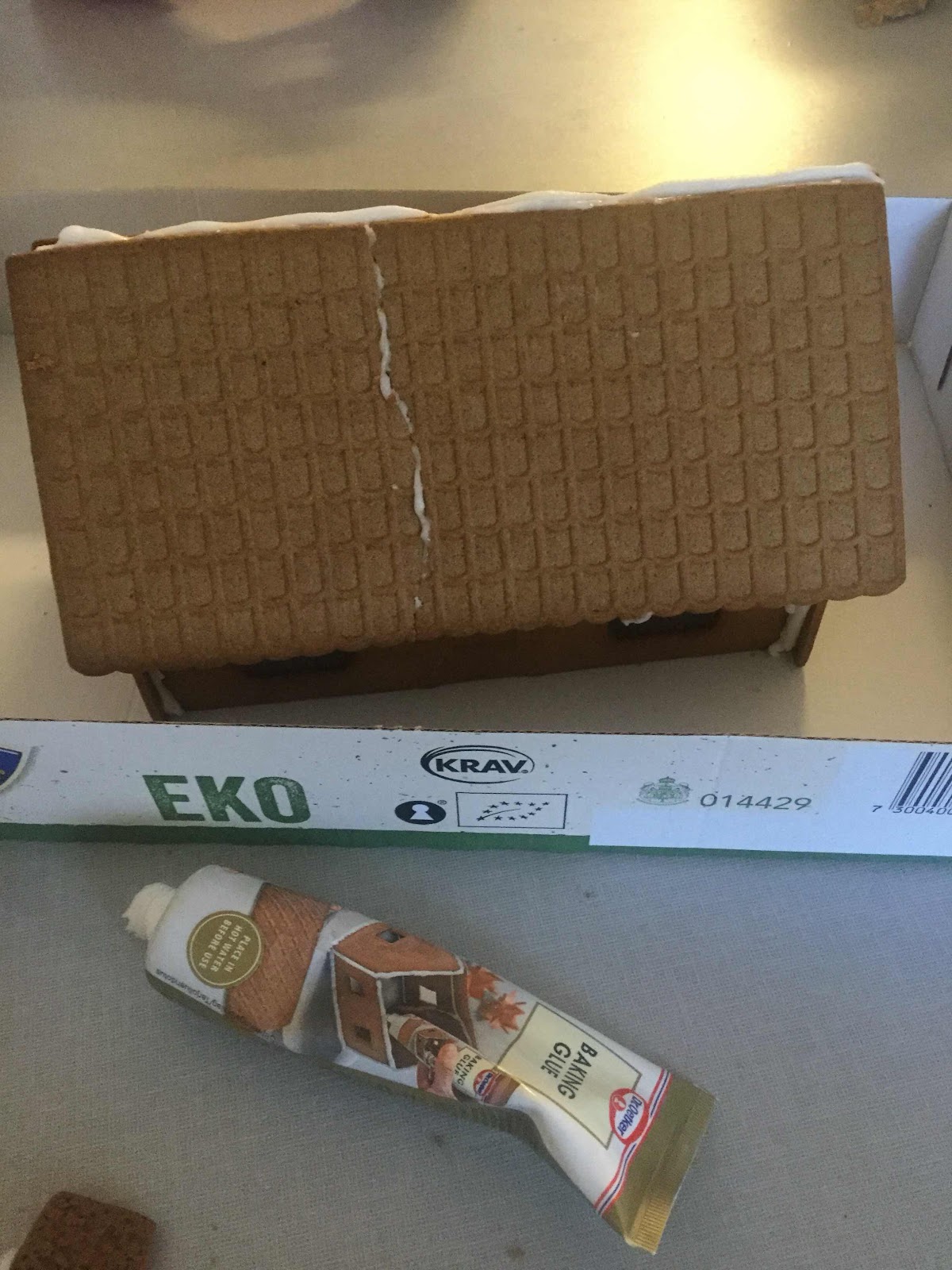Vi ska bygga ihop vårt pepparkakshus. När vi öppnade förpackningen var delar av huset sönder... 😢